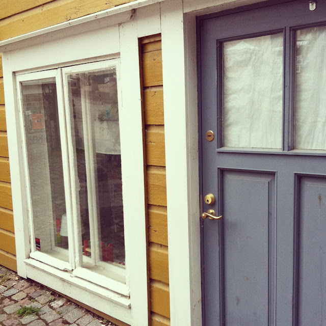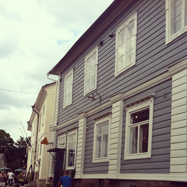 Piipahdettiin tänään Porvoossa kahvilla ja jätskillä. Ihasteltiin vanhaa kaupunkia. Nuuskittiin tunnelmaa. Kaunista katseltavaa! Vanhat rakennukset ne jaksaa kiehtoa aina vaan. Söpö virkattu mekko oli myynnissä jonkun putiikin ulko-oven kahvassa. Ihana!