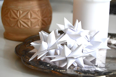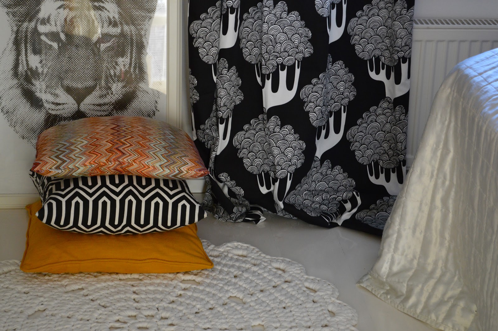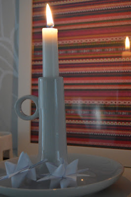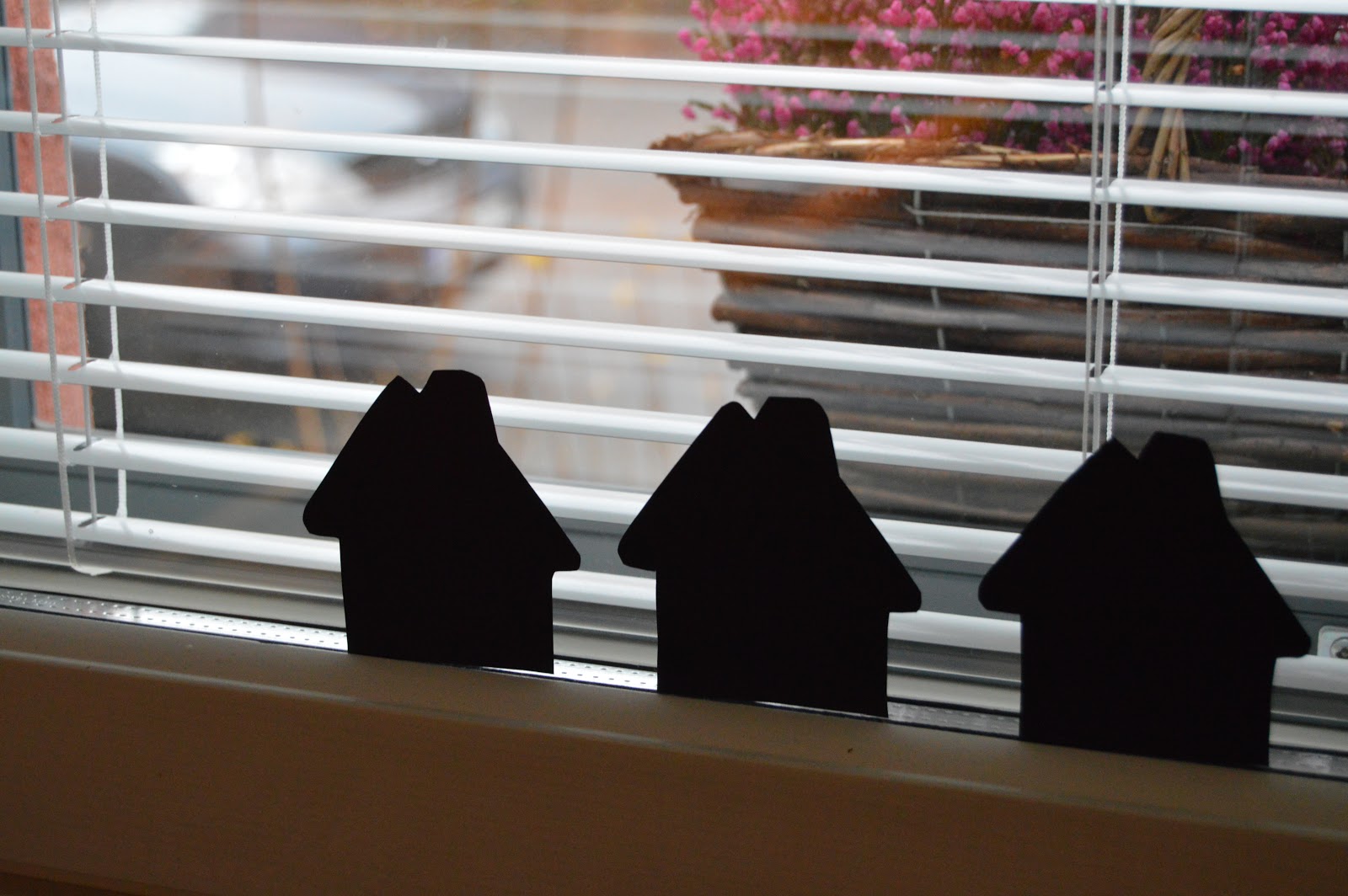 Olohuoneen ikkunaan on satanut lumiverho. Nätti!