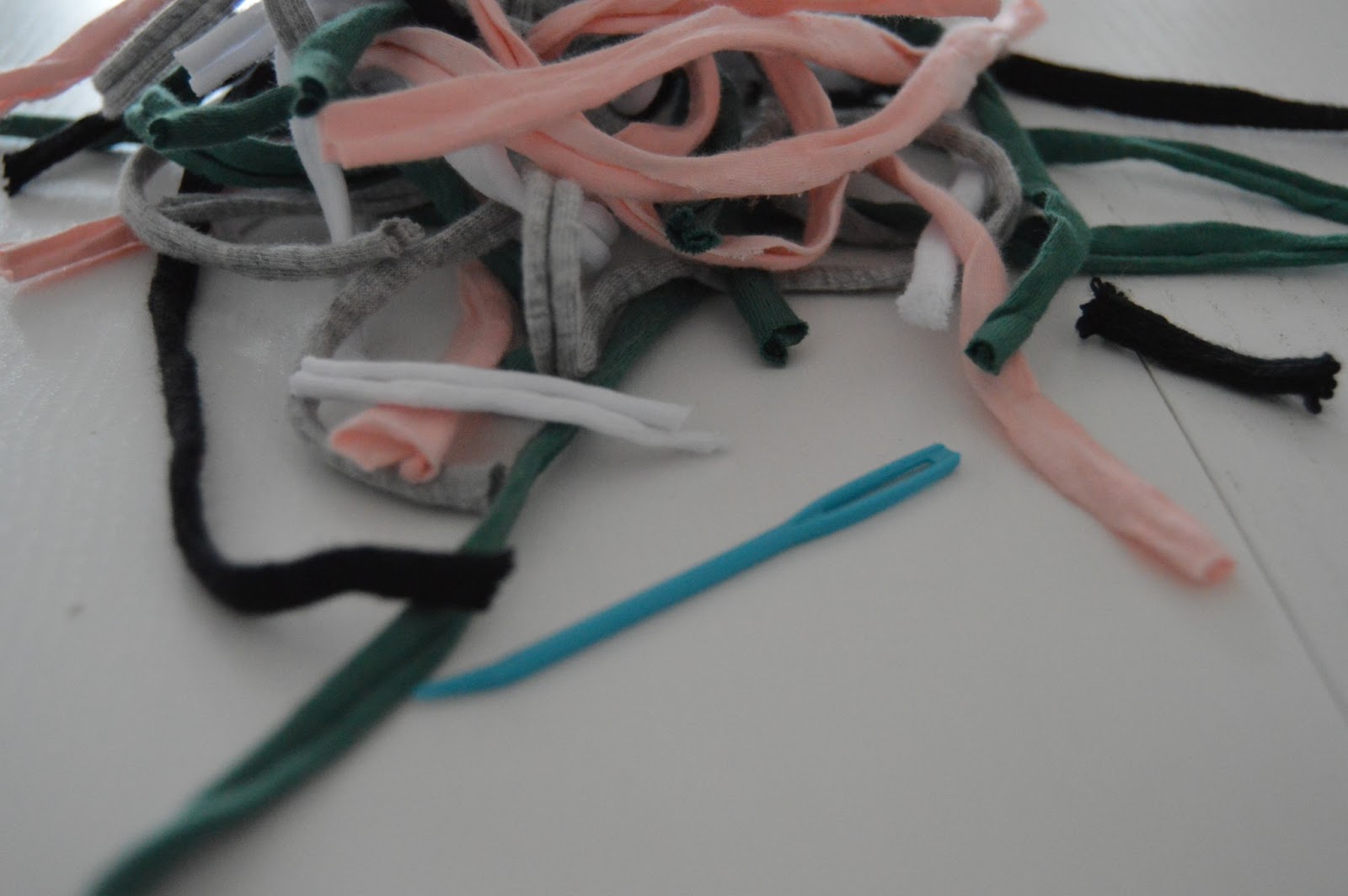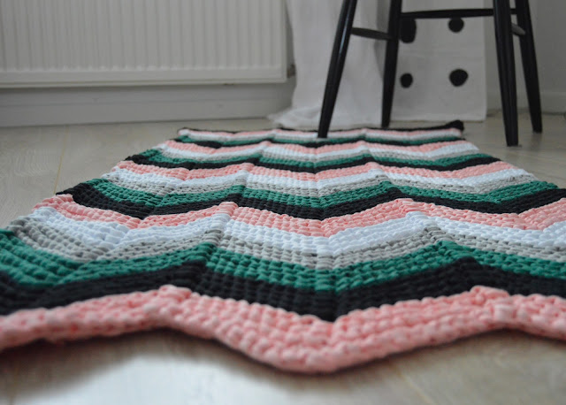 Elämä on tällä hetkellä siis aikamoisen kiireistä ja vauva käsivarsilla on hyvin hankala mitään tehdä. Eilen otin kuitenkin itseäni niskasta kiinni ja vihdoin sain matosta langanpätkät pujoteltua piiloon. On muuten oiva apulainen tuo muovinen parsinneulaa muistuttava ryijyneula... Jos joku tietää sille oikean nimen, niin saa hihkaista. Ei ollu edes kova homma, mutta tunnetusti se joka jää helposti tekemättä kun on olevinaan niin kamalaa.