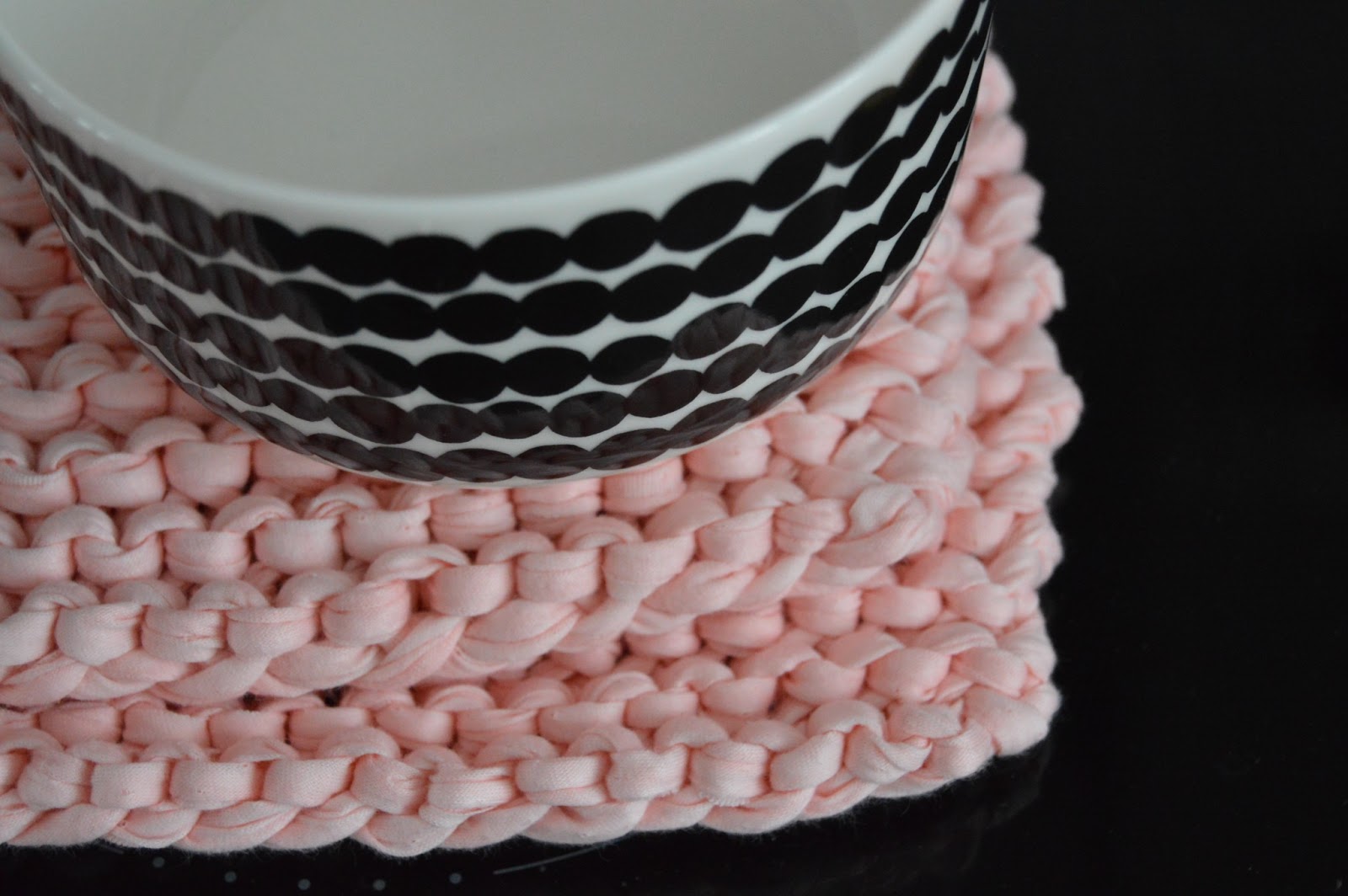 Omaa aikaa ei siis juuri ole. Viimeviikolla arjen pelastaja kuitenkin saapui! Kantoliina, tuo kummallinen trikoomytty. Mun uusin ystävä. Kumma miten kaikki muuttuikin kertaheitolla helpommaksi. Eilen illalla sain pitkästä aikaa käsiini puikot ja kerän trikookudetta. Syntyi kaksi patalappua. Muuttolaatikkoon ei tarvitse pakata niitä vanhoja, nuhruisia läpysköitä. Vaan ihan uudet, korallinpunaiset lappuset. Pienestä se ilo syntyy!