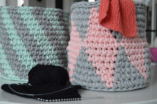 Oon mä kuitenkin jotain saanu aikaiseksi. Virkkasin parit korit ja tiskirätit hyppäs myös puikoille. Oli pakko, eihän sitä nyt uuteen kotiin voi vanhoilla räteillä mennä :) Näitä on hyvä väsätä kun liinamatkustajaa nukuttaa... Lisämaustetta arjen pyörittämiseen tuo tuo katala ja kaikkialla riehuva flunssa, joka nyt on vauvan kiusana.