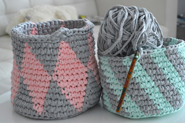 PoistaKylläpä sä olet taas ollut ahkerana! Ihanat korit, tosi herkut! Mulla on ollut tuollainen raidallinen tekeillä joulusta asti, mutta ei saa tehtyä kun värit ei nappaa (otin vaan pari sinistä jotka on lojuneet nurkissa jo viime kesästä asti). Pitäis keksiä sille joku kohde niin nousisi taas motivaatio. Tällä hetkellä on kyllä kroppa niin jumissa kaiken rempan jälkeen, että ei taitais edes koukku pysyä kädessä ;)