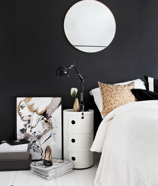 Halutaan musta seinä! Vanhassa kodissa se oli eteisessä. Tänne sitä ollaan mietitty vähän joka huoneeseen. Lastenhuoneeseenkin. Uusin vaihtoehto olisi makuuhuone. Vähän vihreää ja ehkä pronssia joukkoon. Tai en minä tiedä, sano sinä? :)