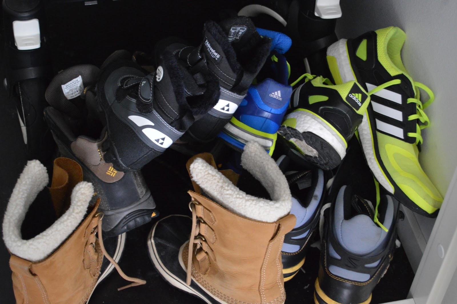 Tuulikaapin kenkävuori. On lenkkareita ja monoja ihan riittävästi... :/